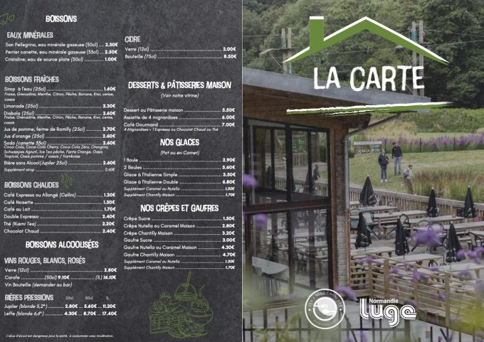 Normandie Luge vous propose un menu varié avec de délicieux burgers, pizzas ou encore salades. Savourez un bon plat accompagné de frites autour d’une boisson chaude et finissez avec un délicieux dessert fait maison pour une journée parfaitement réussie ! Situé à quelques pas de nombreuses activités comme le saut à l’élastique, la tyrolienne géante, la balançoire géante ou encore la luge sur rail, cet espace de restauration est idéalement localisé pour poursuivre vos expériences.