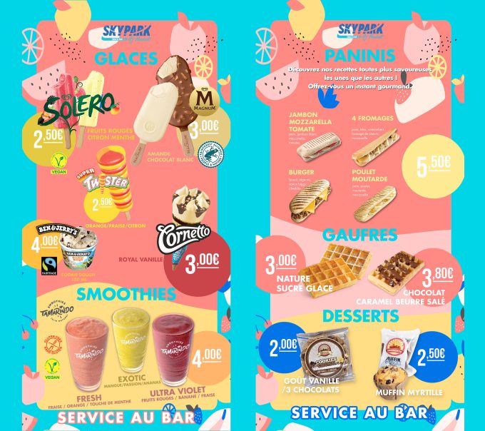 Après une matinée de sensations fortes et d’aventure, Skypark Normandie vous propose une halte à son espace snack/bar pour une pause détente bien méritée ! Avec pas moins de trois terrasses, profitez d’un cadre enchanteur et convivial au cœur de la nature sur le haut du site du Viaduc de la Souleuvre pour vous restaurer. Ouverte en continu, la restauration rapide proposée par le snack/bar vous permet de faire le plein d’énergie avant de reprendre vos activités ! Idéal pour un repas savoureux et sur le pouce, c’est la garantie d’un moment convivial à passer avec votre famille ou vos amis pour cette sortie exceptionnelle.